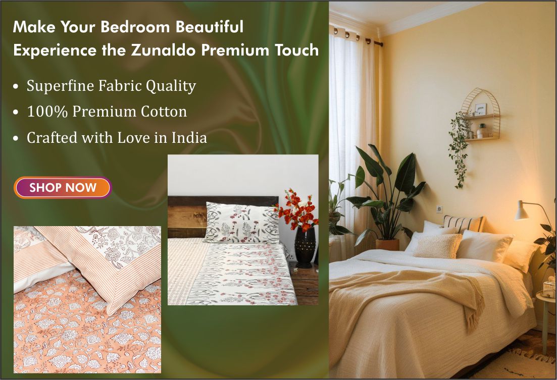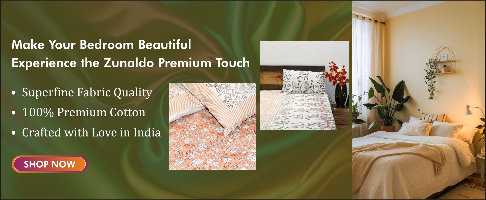 Add a refreshing charm to your bedroom with this Zunaldo hand block printed bedsheet, featuring subtle peach florals and soft green borders. Crafted in pure cotton, it brings a soothing...